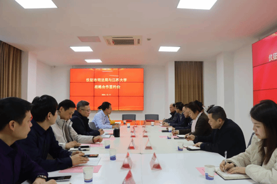 12月11日,仪征市司法局党组书记、局长赵承钧一行来院洽谈合作,就知识产权人才培养、科学研究、社会服务等达成合作意向,签署战略合作协议。我院院长赵观兵,副院长韩奎国、李强出席活动,活动由韩奎国主持。