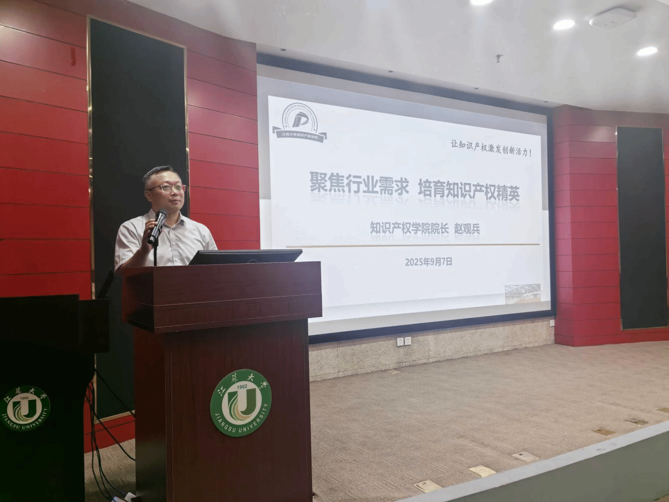 院长赵观兵代表学院全体教职工欢迎2025级学子加入bv伟德国际1946大家庭。他以“聚焦行业需求 培养知识产权精英”为题,详细介绍了学院发展历史、专业优势特色、人才培育模式及培养成效等内容。他希望同学们及时从被动学习向主动学习转变,强化自我管理,做好职业生涯规划,明确奋斗目标,最终实现个人价值。