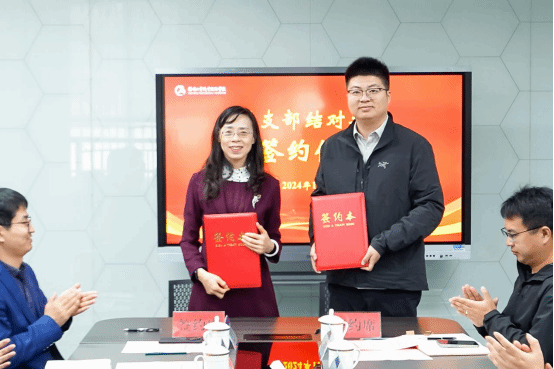 蒋伟介绍了扬州工业职业技术学院基本情况及近年来取得的成绩,他希望双方以党支部结对共建活动为契机,以高质量党建为引领,重点围绕创新创业赋能、人才培养、师资队伍建设等方面加强沟通交流,资源共享,融合共进。电商学院党总支副书记(主持工作)王盛介绍了电商学院党总支的基本情况及党支部结对共建协议相关内容,经过双方讨论协商,一致同意并共同签署了支部结对共建协议。