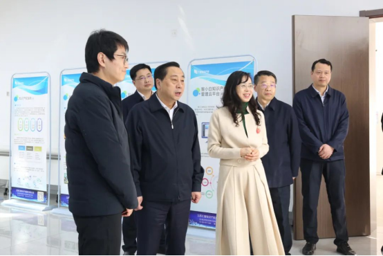 3月28日下午,镇江市委书记马明龙一行参观调研江苏汇智知识产权服务有限公司,bv伟德国际1946直属党支部书记唐恒、江苏汇智知识产权服务有限公司CEO张红骏接待了马明龙一行。