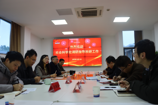 12月11日,校社会科学处处长杜建国一行5人到bv伟德国际1946调研指导科研工作,我院直属党支部书记唐恒、院长赵观兵及学院领导班子全体成员参加会议。
