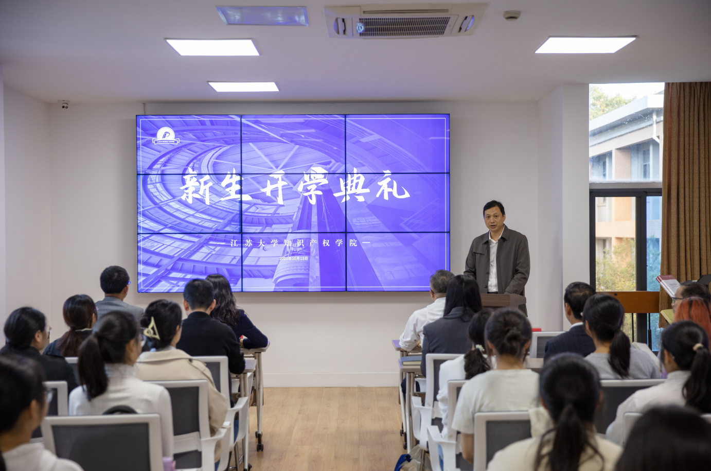 教师代表王浩副教授从知识产权专业本科人才培养和本科生学习特点出发,对学院“本科教育研究生化”特色培养理念进行解读。他寄语全体新生,要铸就坚定理想信念,打牢知识产权专业基础,培养专业思维,养成良好习惯,实现个人梦想。