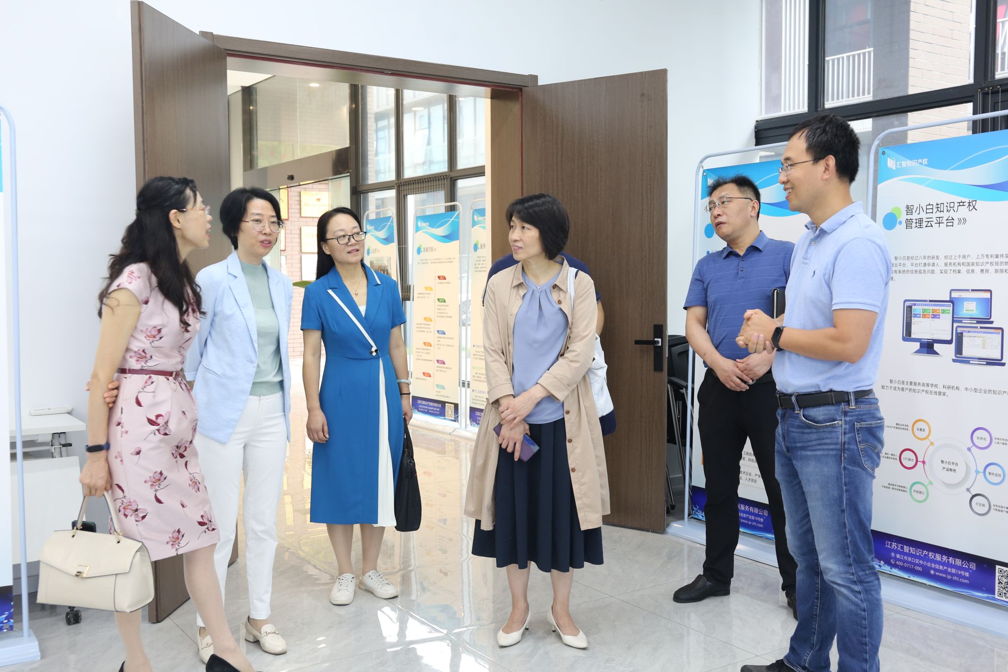 蒋彩霞一行首先实地调研走访了江苏汇智知识产权服务有限公司,之后在bv伟德国际1946交流座谈。
