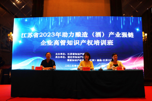 7月20日-21日,由江苏省知识产权局主办、宿迁市知识产权局和国家知识产权培训(伟德bv1946)基地共同承办的江苏省2023年助力酿造(酒)产业强链企业高管知识产权培训班顺利举办,来自宿迁市80多家酒企的100余名企业高管参加了本次培训。宿迁市知识产权局副局长凌志娟、bv伟德国际1946院长唐恒出席了本次开班仪式,开班仪式由伟德bv1946专利事务办主任何英主持。