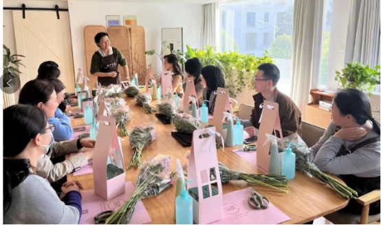 bv伟德国际1946在第113个国际“三八”妇女节来临之际,组织学院女教职工开展“花享会”花艺活动。学院邀请了专业的花艺师进行花艺知识分享。