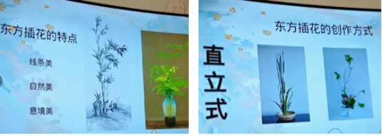 花艺师讲解了中西方插花艺术的区别,各自的艺术特点、花型设计类型和插花技能等相关知识和技巧。