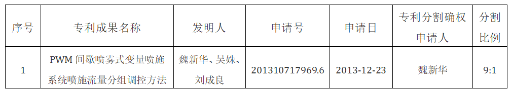 根据《伟德bv1946专利分割确权管理办法(试行)》(江大校〔2019〕39号)的规定,经发明人申请、学校审核,拟将以下专利成果权分割确权,现予以公示,公示期为 2019 年 6 月 19 日至 2019 年 7 月 03 日。