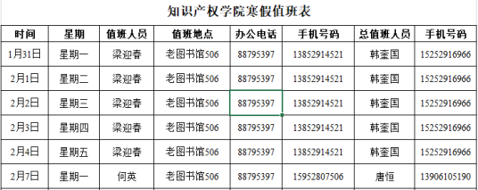 2.1月31日至2月7日期间,不再办理日常业务,如有特殊事项请联系学院值班人员。