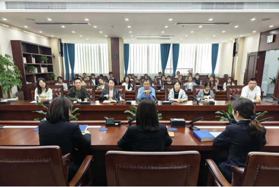 旁听庭审结束后,学院师生与法院审判长、审判员就旁听案件及知识产权案的现状及发展进行了深入探讨。