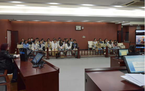 该案庭审双方为某影视有限公司与镇江一家小型旅馆,上诉人(著作权人)通过互联网在线参与了庭审。庭审中双方围绕当下较为有争议的酒店提供影视点播服务是否侵害著作权人的著作权问题,充分表达了各自的诉求与意见,合议庭组织双方围绕上诉人的行为是否侵害了被上诉人的著作权展开充分辩论。学院师生在法庭上近距离旁听了案件审理过程。