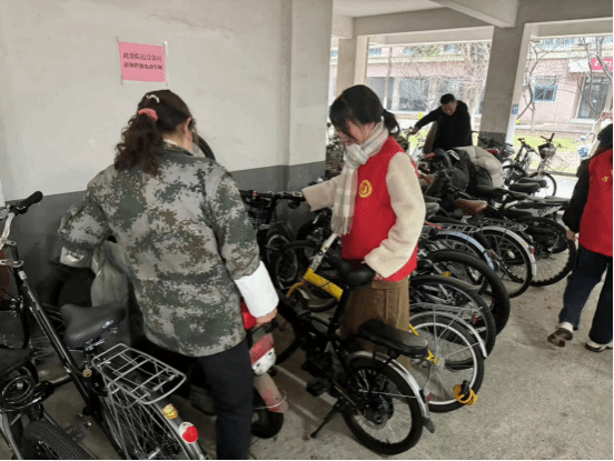 在清理过程中,同学们仔细检查每一辆电动车是否具有正规牌照,是否属于超标改装车,同时将宿舍架空层违规停放的电动自行车集中推至规定停放区域,并对停放区进行了统一规范整理。