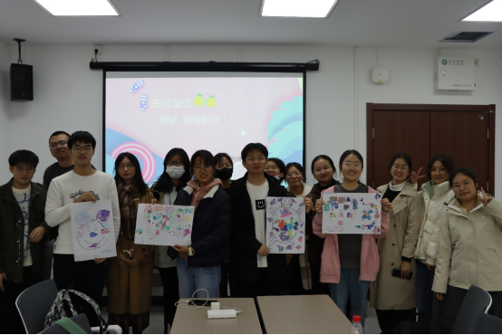 本次活动共有“焦虑介绍”、“手势舞天天向上”、“撕纸·添画”三个环节。首先,心理委员从为什么、怎么做的角度出发,介绍了当代大学生可能出现的焦虑源。同时,对于出现焦虑后该怎么办,她也提出了四种建议,鼓励同学们放下手机,进行适当放松。