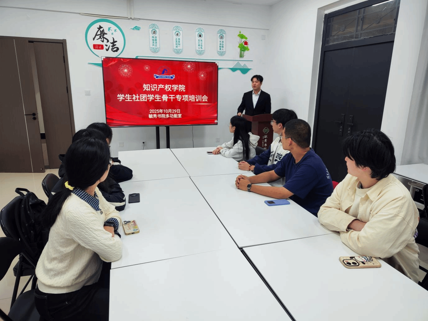 为落实学校学生社团规范管理要求,履行业务单位主体责任,10月29日,bv伟德国际1946指导的知识产权服务协会在毓秀书院多功能室召开 2025 年秋季学期学生骨干专项培训会。学院申梦昊老师(社团指导老师)、社团负责人及骨干成员参会。