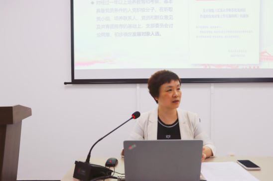 会上,关雪飞以“履行程序 确保先进,以实际行动争取早日加入中国共产党”为题,从申请入党、入党积极分子的确定和培养教育、发展对象的确定和考察、预备党员的接收、预备党员的教育考察和转正等5个方面详细解读发展党员工作规定,重点讲解了入党申请书、发展党员考察表、入党志愿书填写注意事项。她强调,大学生是党和国家事业的建设者和接班人,应当认真学习党的理论知识,端正入党动机,坚定崇高信念,为争取早日加入中国共产党而努力奋斗。