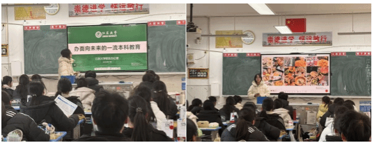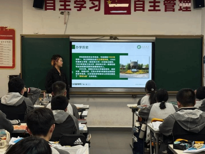 知识产权2502班孙梦扬远赴贵阳为明中学,以线下分享会形式,展示伟德bv1946办学实力与校园生活,她结合西南地区升学特点,讲述自身从高中到江大的蜕变历程,以温暖细致的分享收获学弟学妹们的热烈反馈。